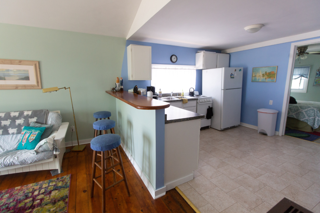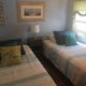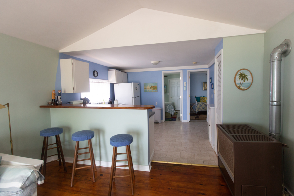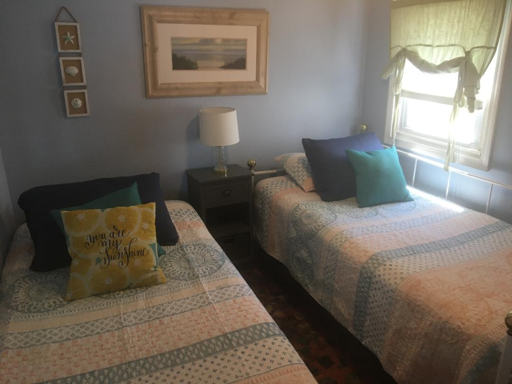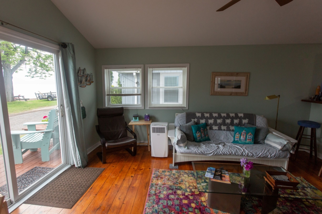 There are 2 bedrooms – 1 bedroom has a queen bed, the other has 2 twin beds. Each bedroom has individually controlled baseboard heat. There is a futon in the living room that can accommodate up to another 2 people. All linens are included.